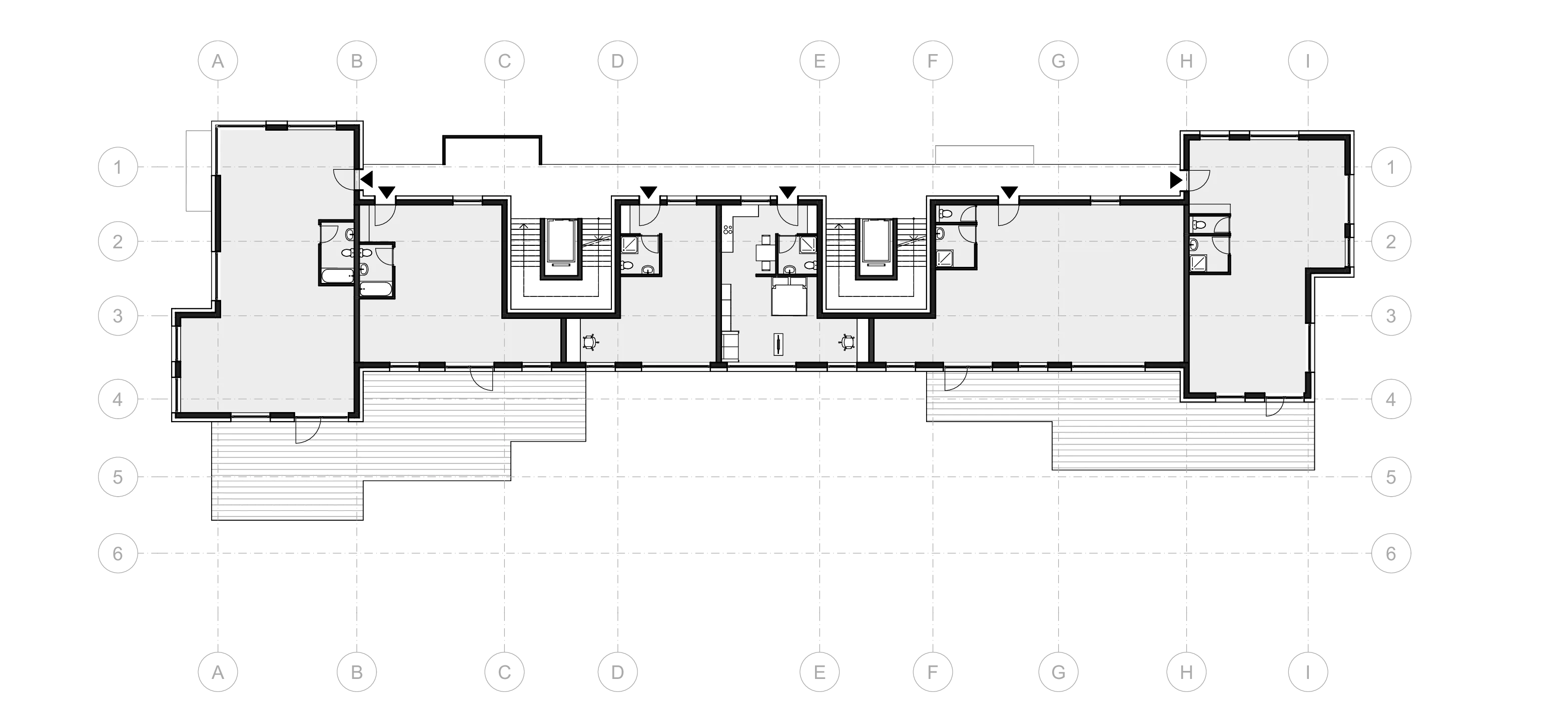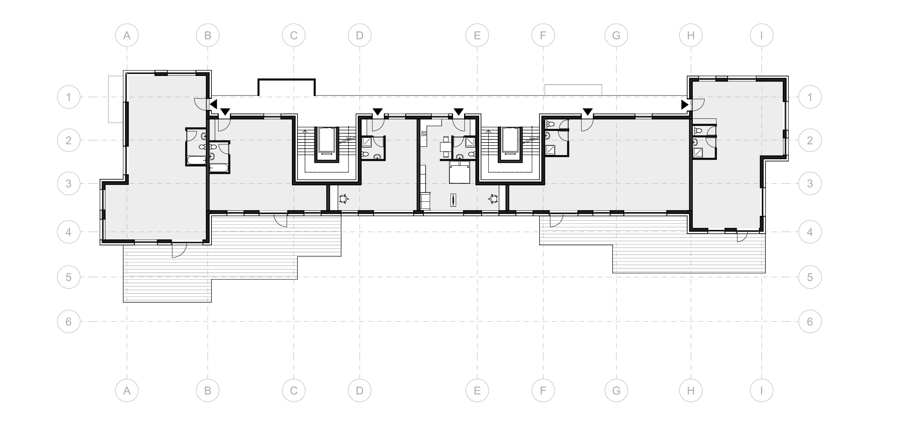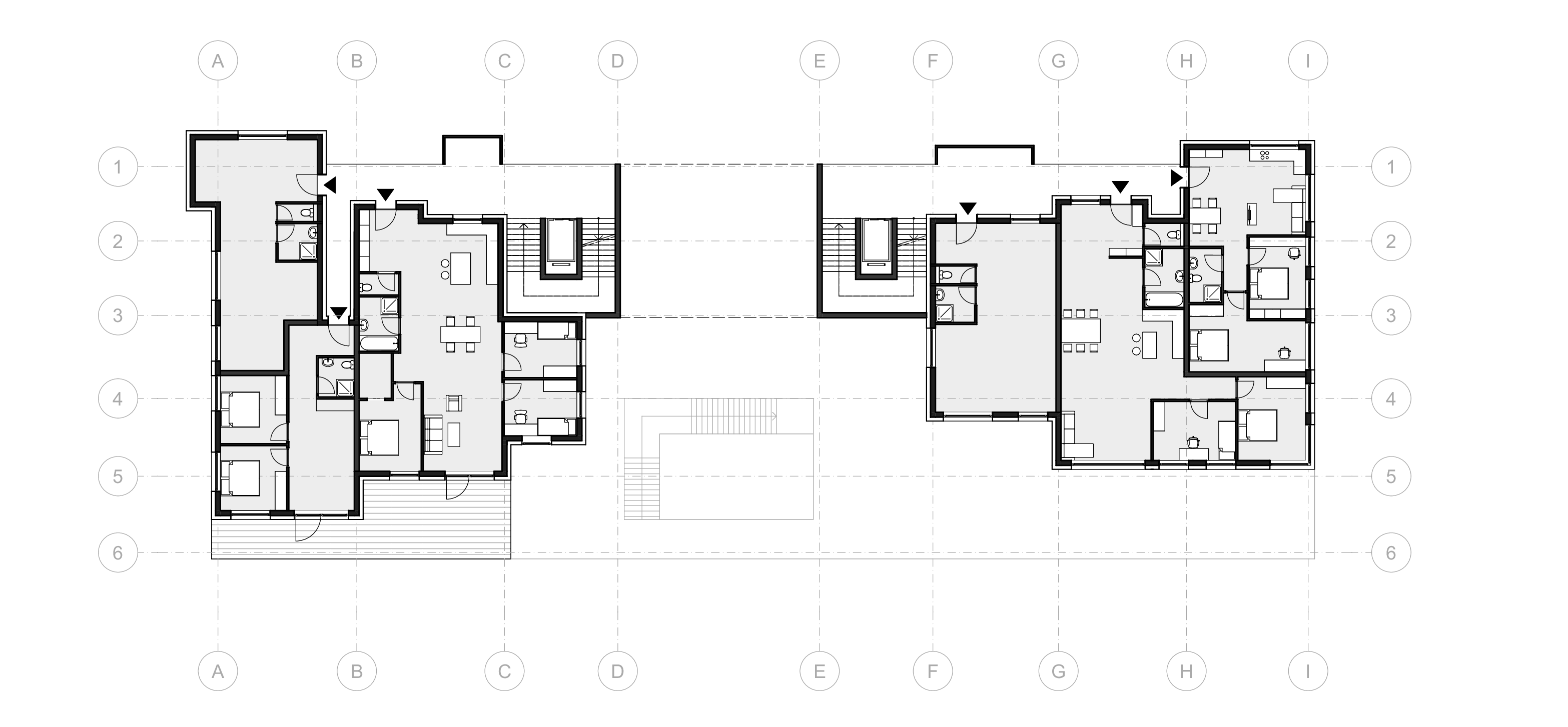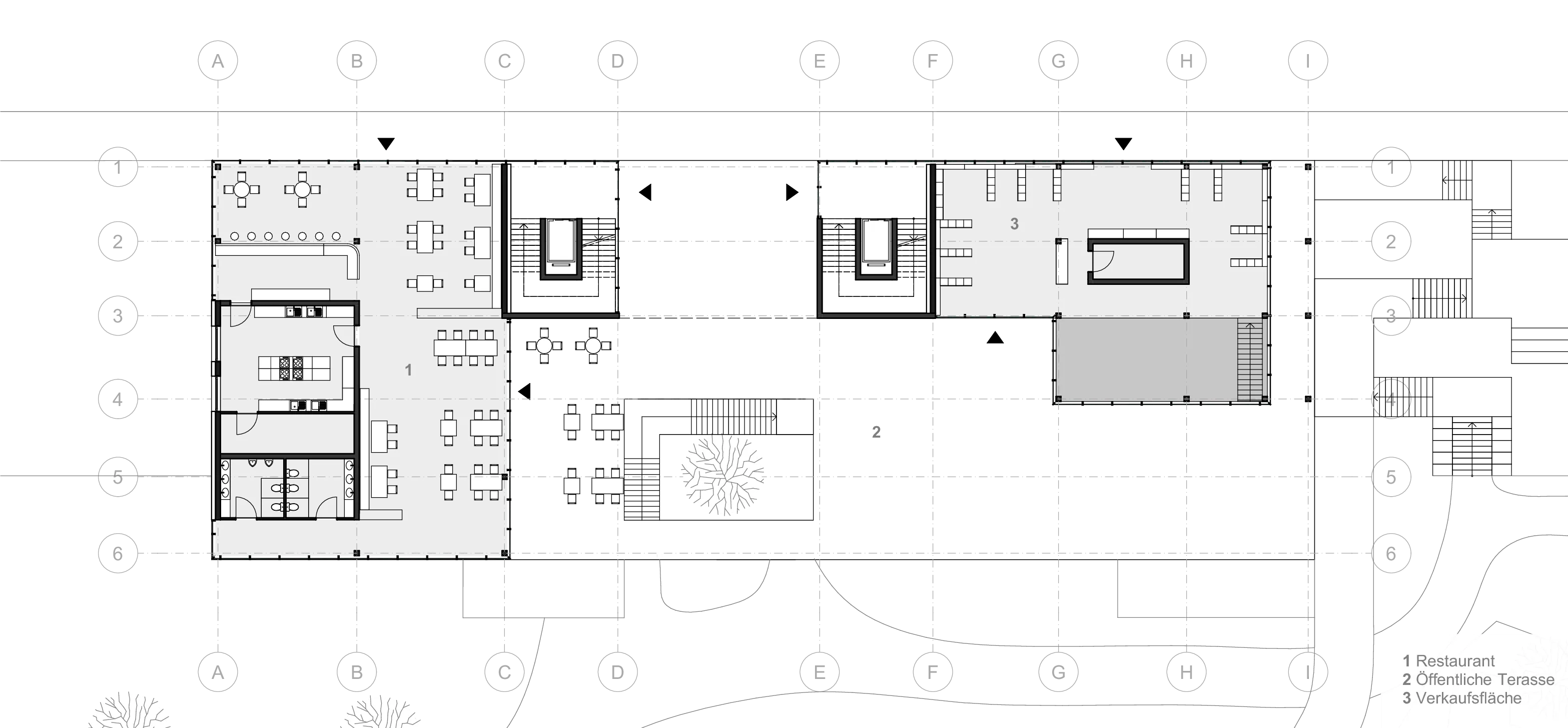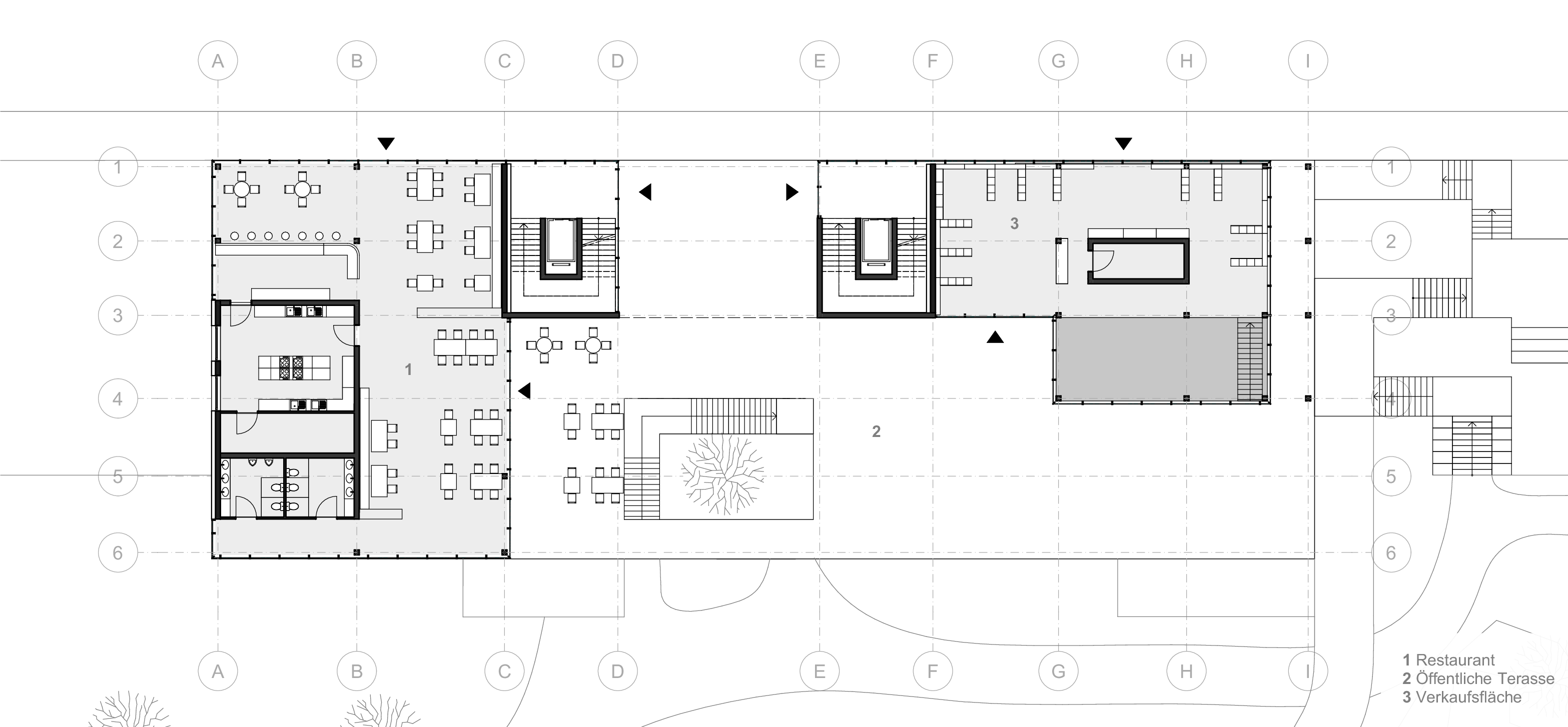 Das Projekt kombiniert verschiedene Wohnungstypen, die gemeinsam die Grundform bestimmen. An der Straßenseite wurde bewusst mit der bestehenden Blockstruktur gespielt und ein Laubengang angeordnet. Richtung Park öffnet sich das Wohngebäude, um den neu entstandenen Freiraum harmonisch in den Park einzubinden. Vertikal ist das Gebäude so strukturiert, dass sich auf Gleisniveau eine Werkstatt befindet, die direkt mit dem Verkaufsraum auf Straßenniveau verbunden ist. Darüber erstreckt sich der gemischte Wohnbereich.